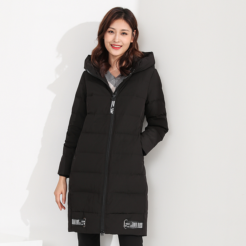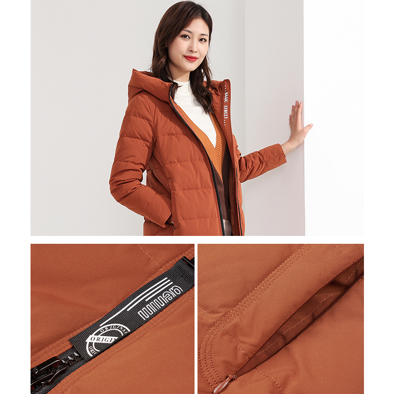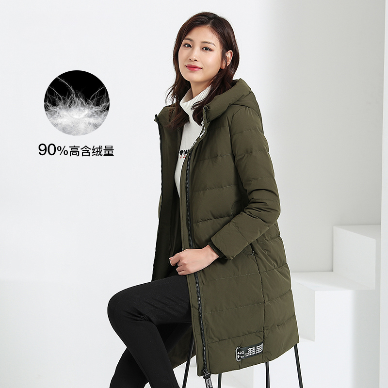 Qianren Gang autumn and winter down jacket 2021 new female hooded simple hem letter webbing jacket 229132