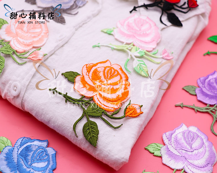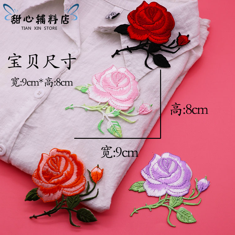 Colorful embroidered rose blob with clothing pants Pants Breaking Hole mending Formula fashion Clothing Decorative Flowers DIY accessories