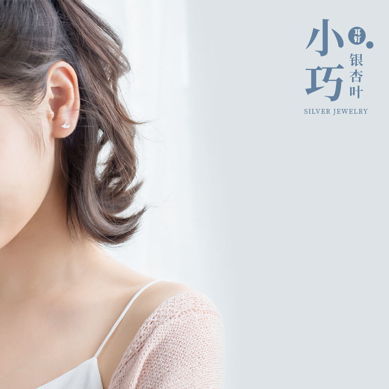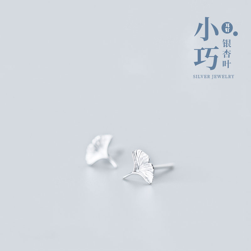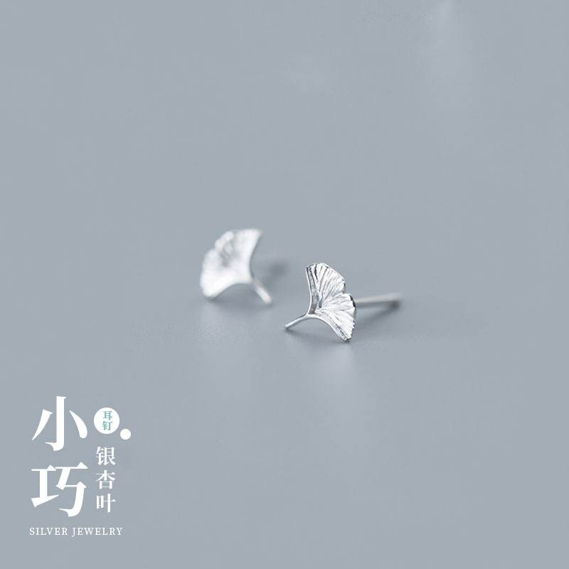 Cat sting small hypoallergenic ginkgo leaf earrings S925 sterling silver feminine temperament sweet simple student wild earrings