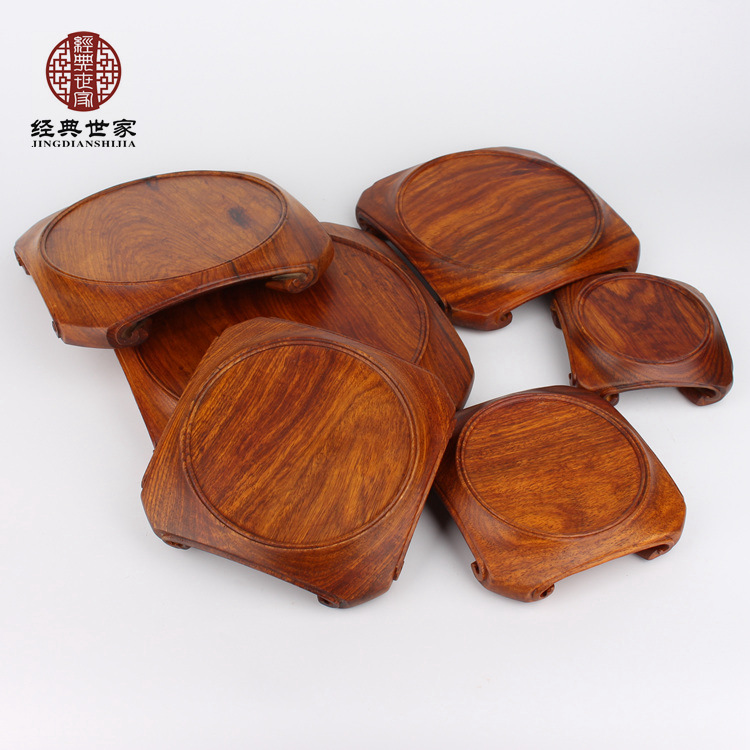 Mahogany rosewood carving whole material round place vase base Round pot purple sand pot seal ornament base