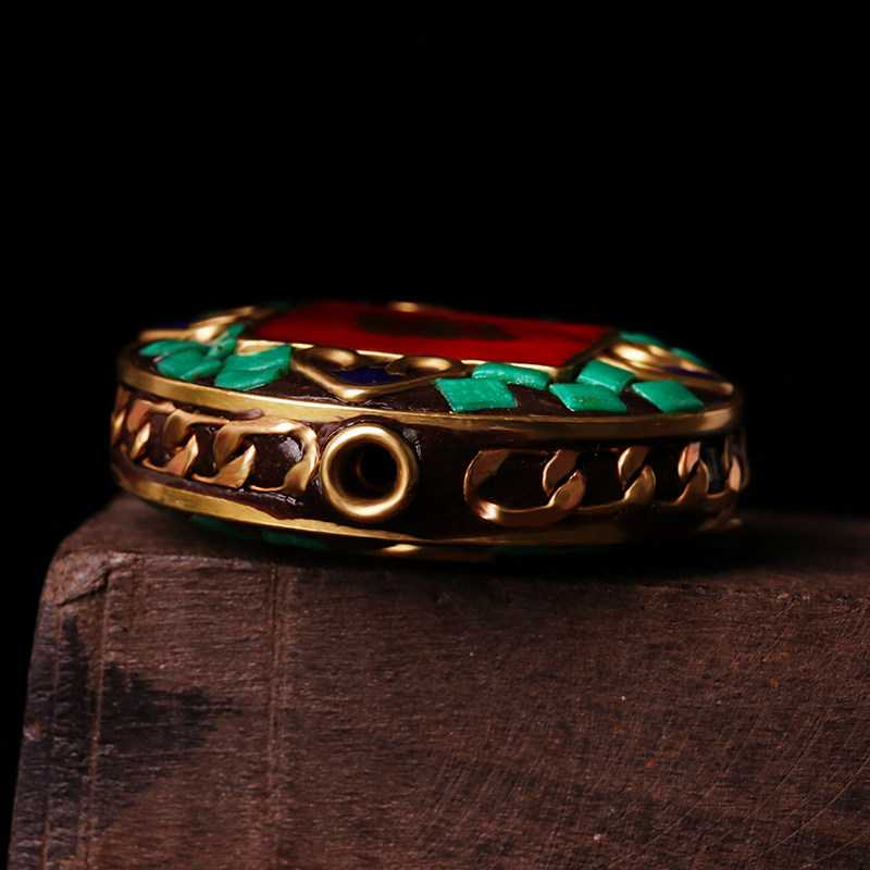 Tibetan style Pure copper hand buzzing round backcloud pendant with coloured beads 3cm