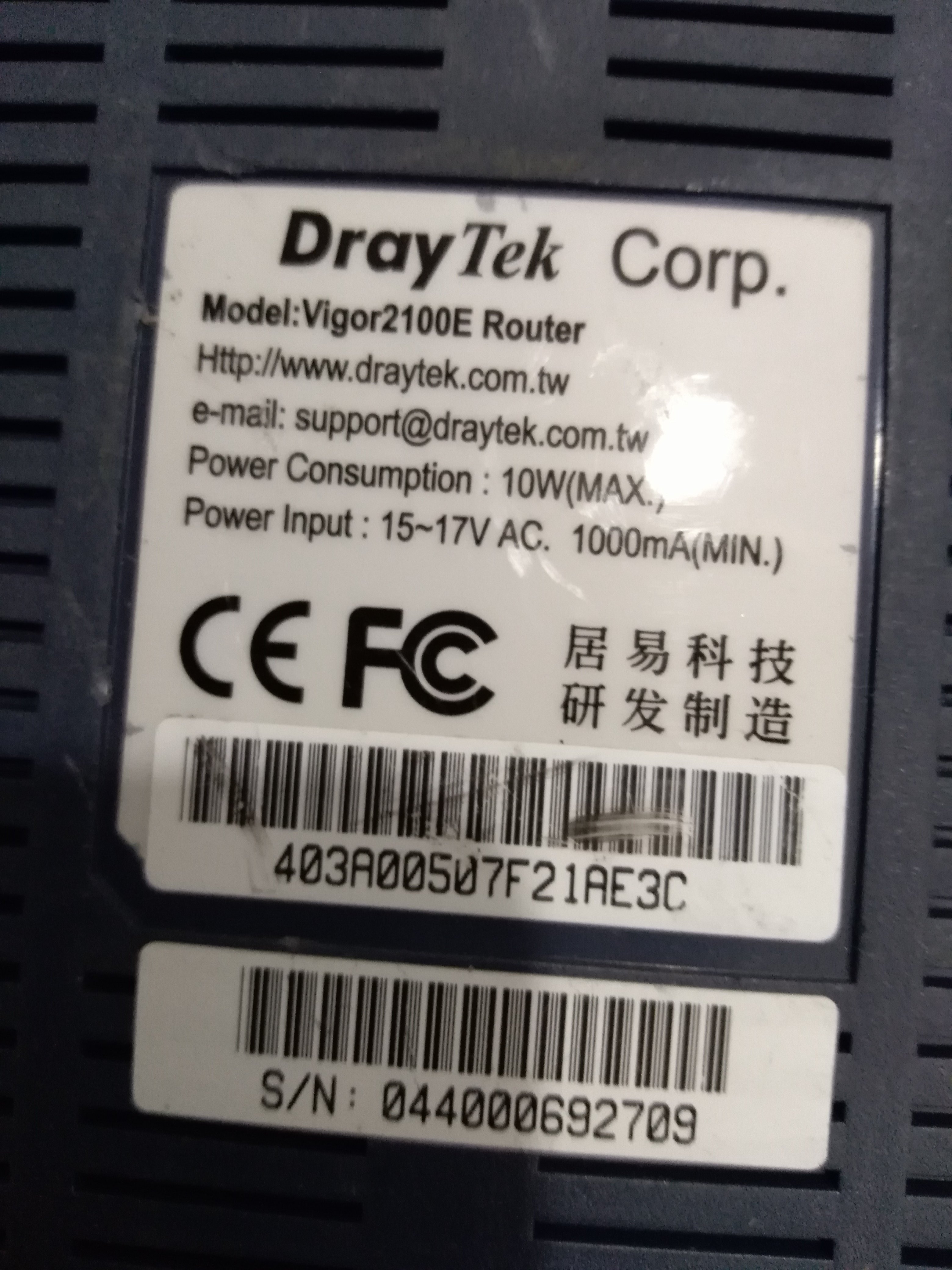 Packaged original Juyi DrayTec Vigor 2100E 4-port 100M wired router