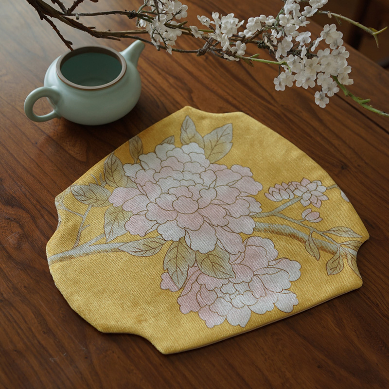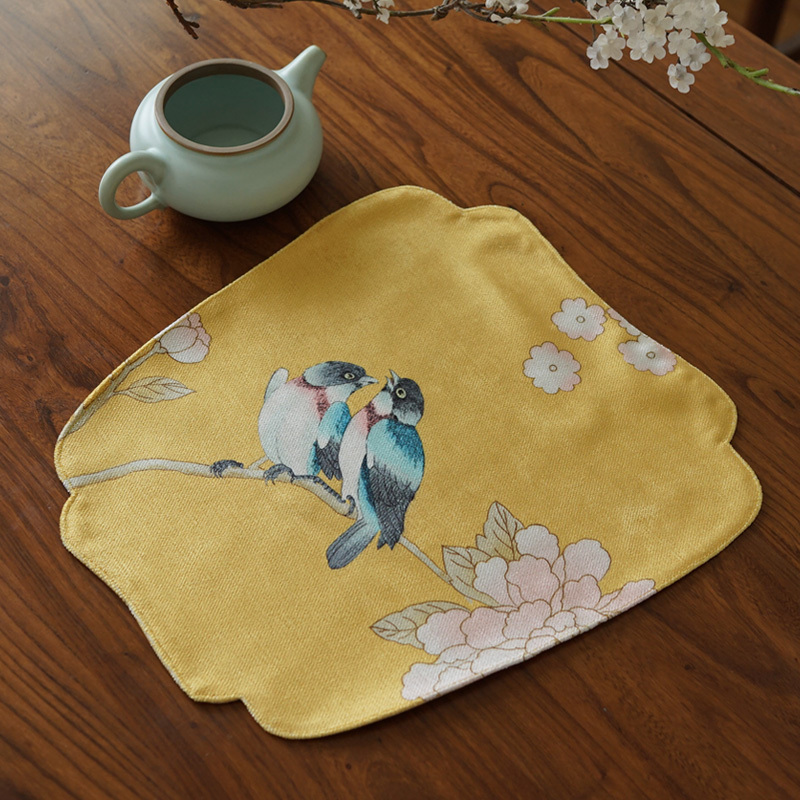 Flowers and birds Gongfu tea cushion dining mat tea cloth Chinese Tea Road table Flag tea mat Sesame Cloth Day Style Zen cotton hemp cloth art tea towels