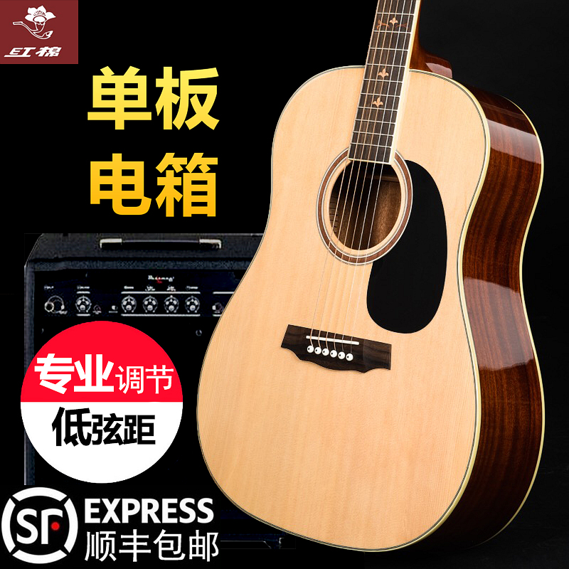 Red cotton plus shock all single guitar 40 41 inch folk song 36 38 inch face veneer junior high school round male and female entry electrical box