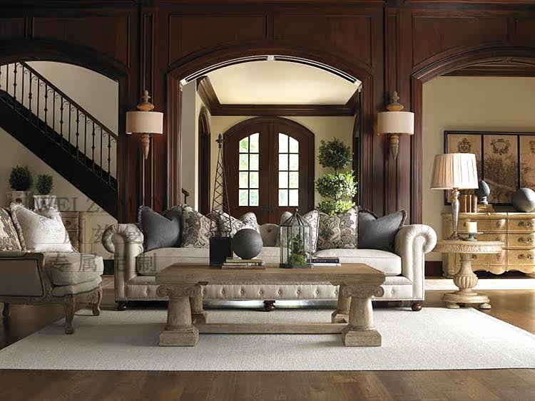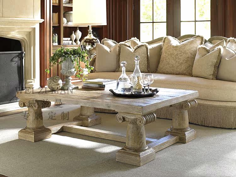 American country all solid wood retro old rectangular carved coffee table French living room oak tea table coffee table