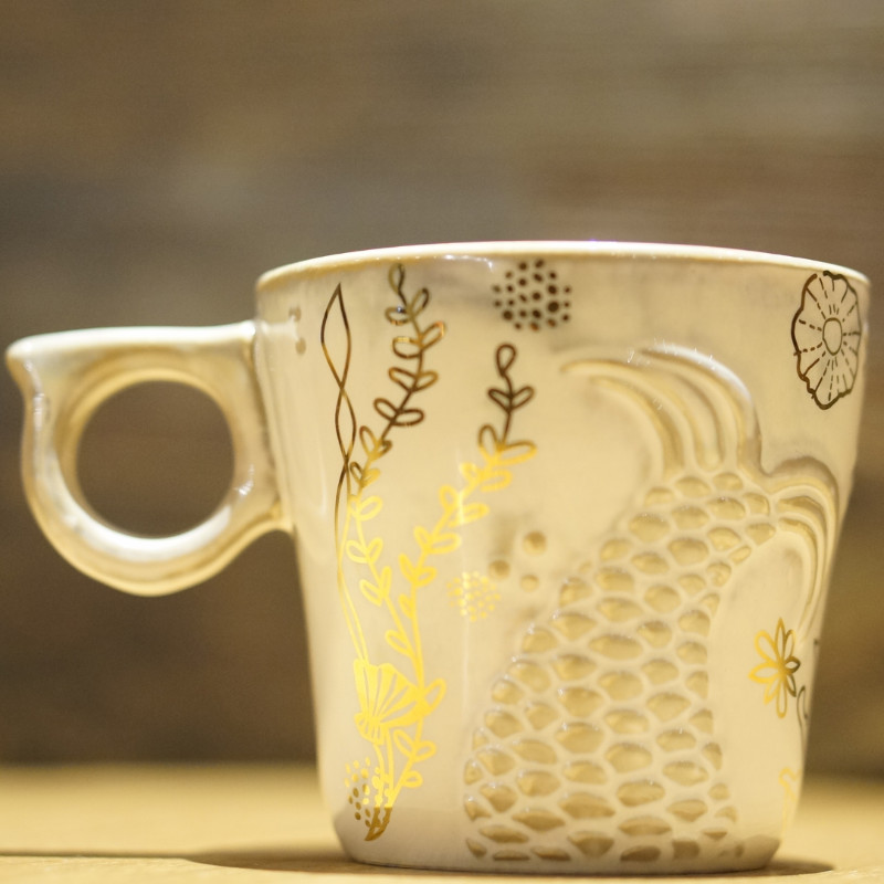 Starbucks Annual Mug Fish Limited Limited Retro Man Fish White Embossed Fish Tail Ceramic Mark Water Cup