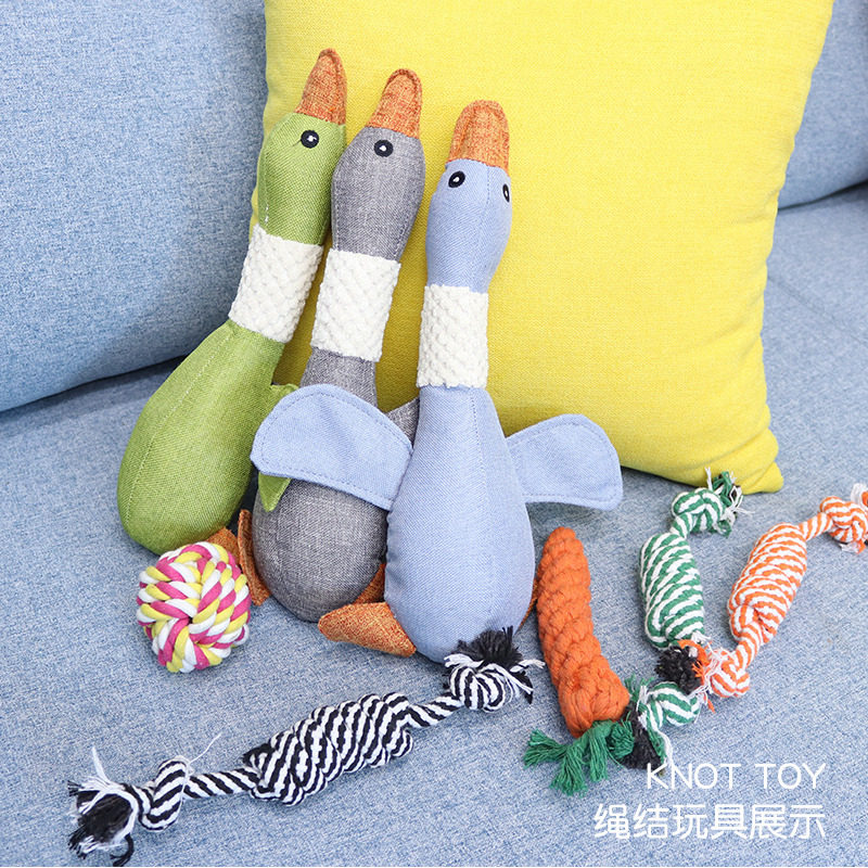 Hemp Cloth Sounding Big Goose (length 32 cm) Cotton rope braided carrapper (length 22 cm) rat knots cotton rope (length 24 cm) cotton rope braided ball (diameter 7 cm) sugar gel vocal tooth ball (straight