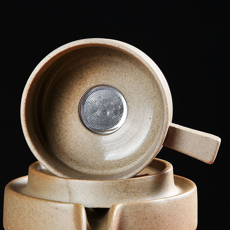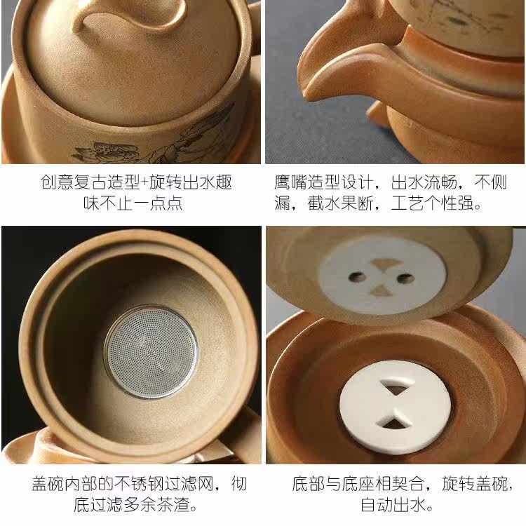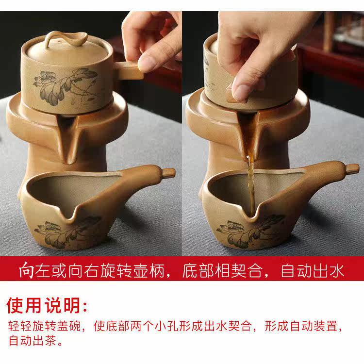Creative rough pottery stone grinding tea set set 6 pieces lazy automatic tea maker kung fu tea set home simple and modern