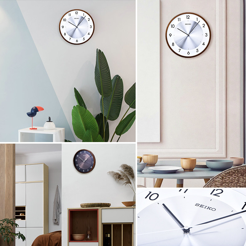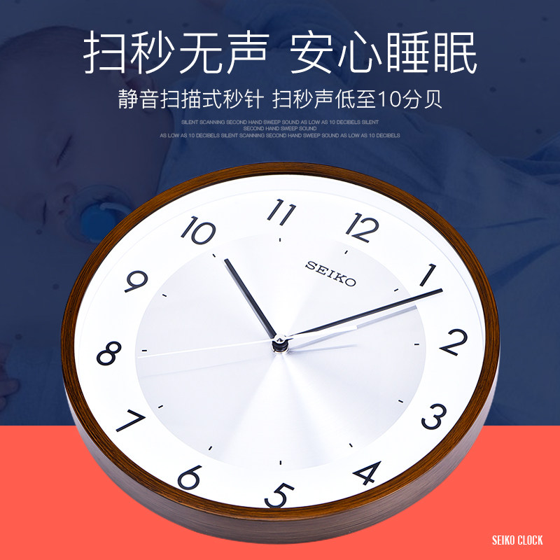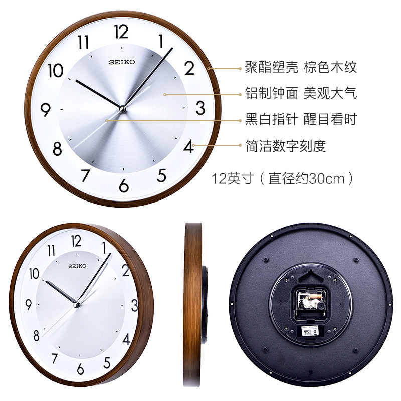 SEIKO 12 inch Living room Bedroom Atmospheric Quartz Clock Silent Round Wood grain Shell Wall Clock