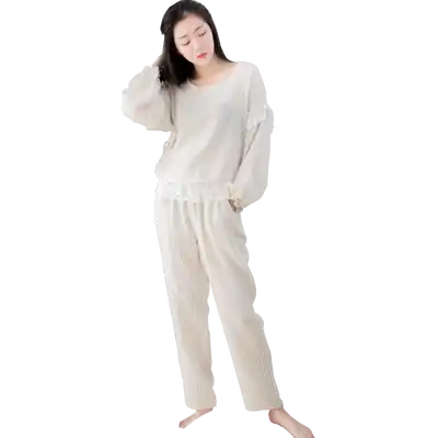 Flower demon new autumn and winter women's cotton double gauze cotton yarn pajamas bat sleeve lace home service suit