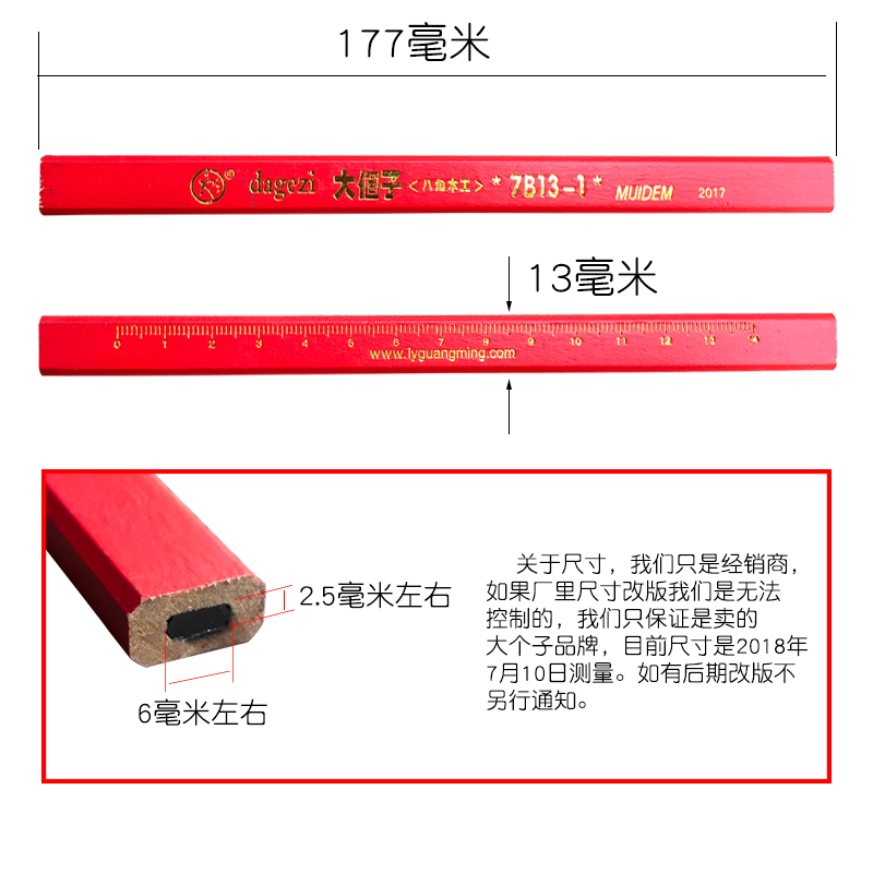 Coarse Core Wooden Pencil Woodworking Special Stroke Pen Flat Core Pencil Large Sub Black Pencil Scribe Marking Tool