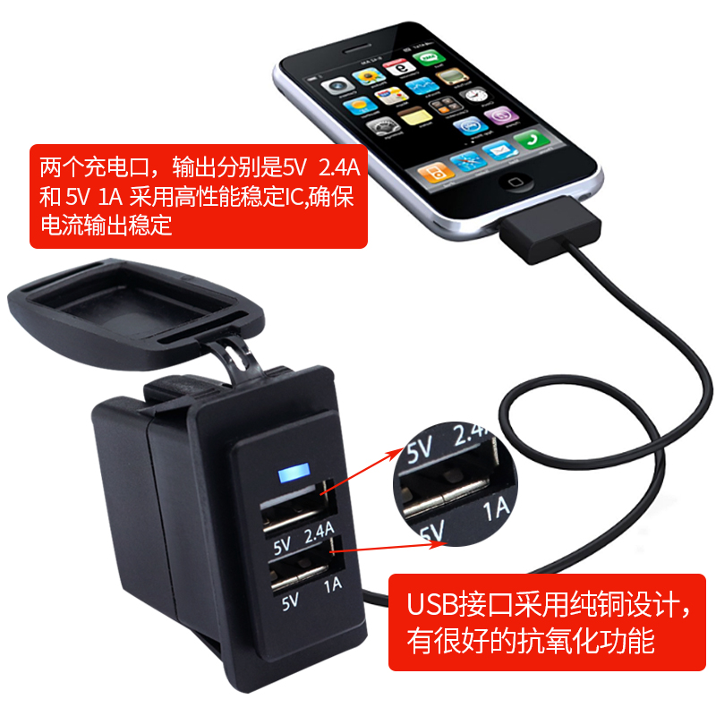 Car USB car charger 12V24V mobile phone charger reserved hole modification 3 4A charging socket locomotive general