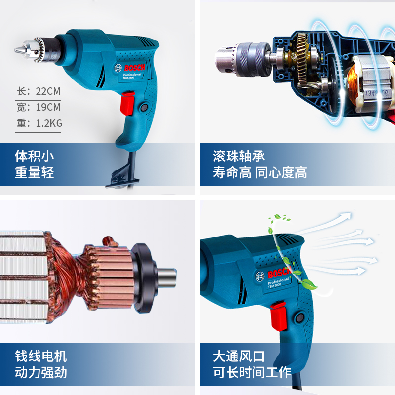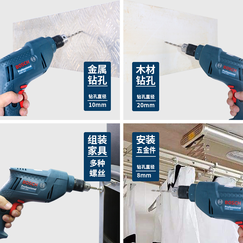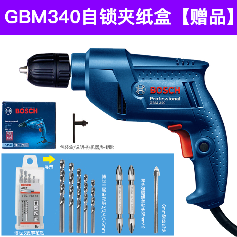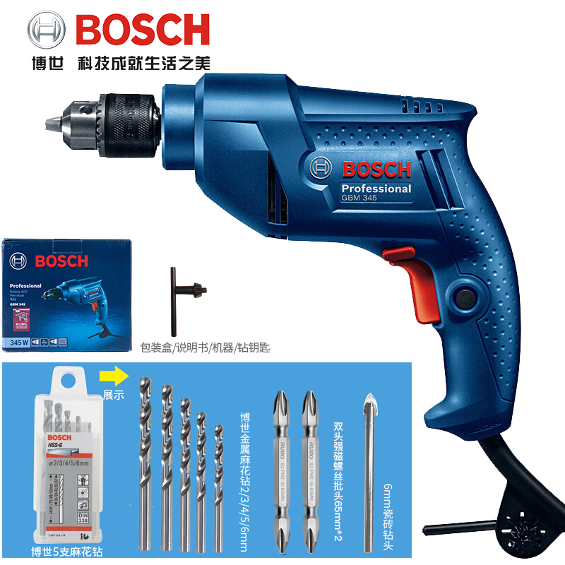 Bosch electric drill Electric drill GBM345 household multi-function electric screwdriver Dr flashlight gun drill power tools
