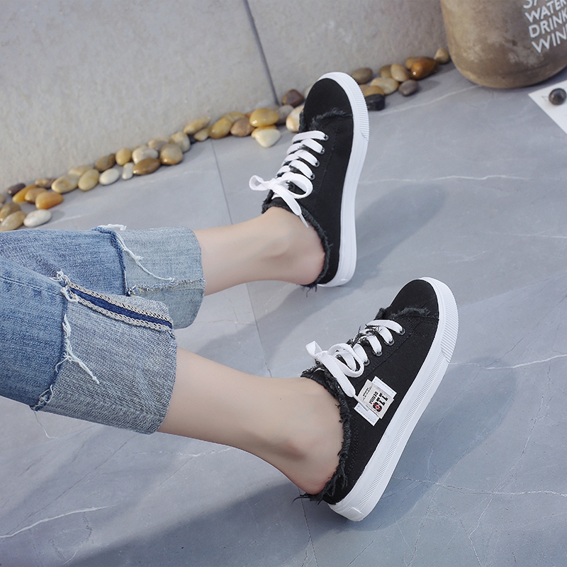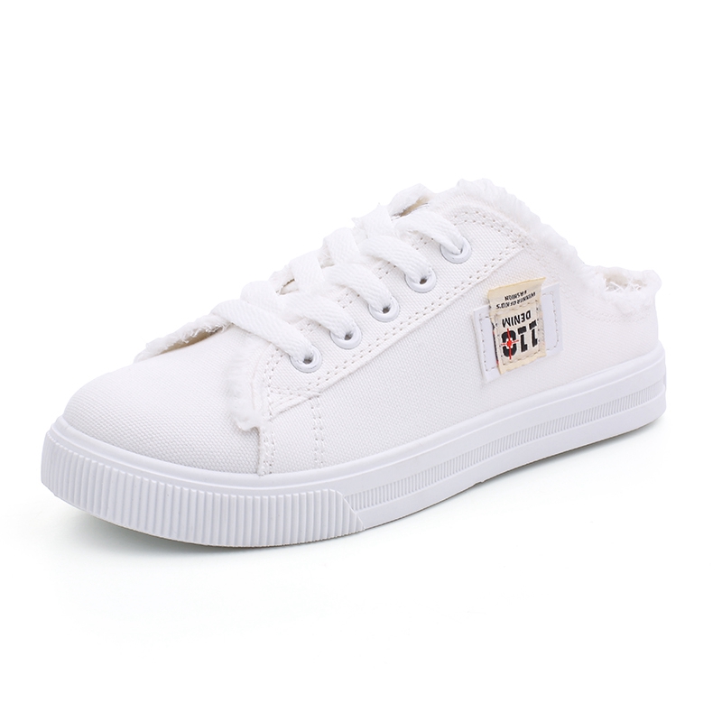 Small white shoes women's 2022 new spring and summer flat students half drag lazy shoes one pedal Korean version all-match canvas shoes