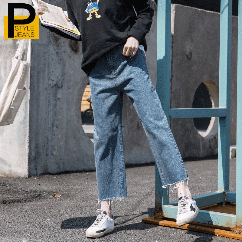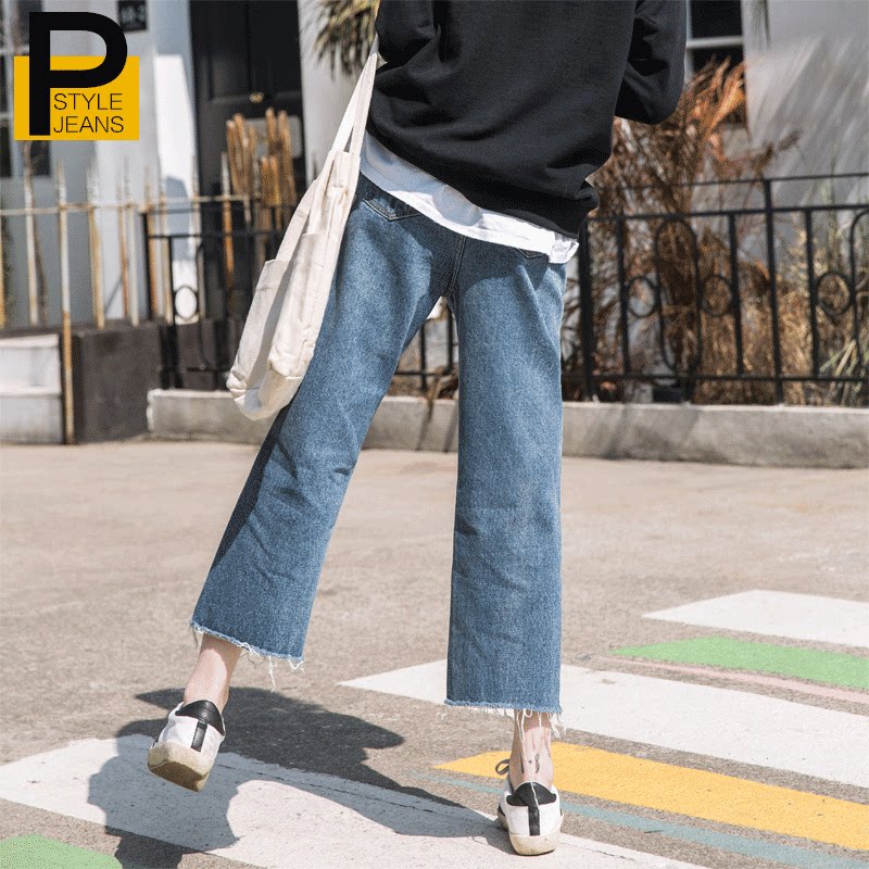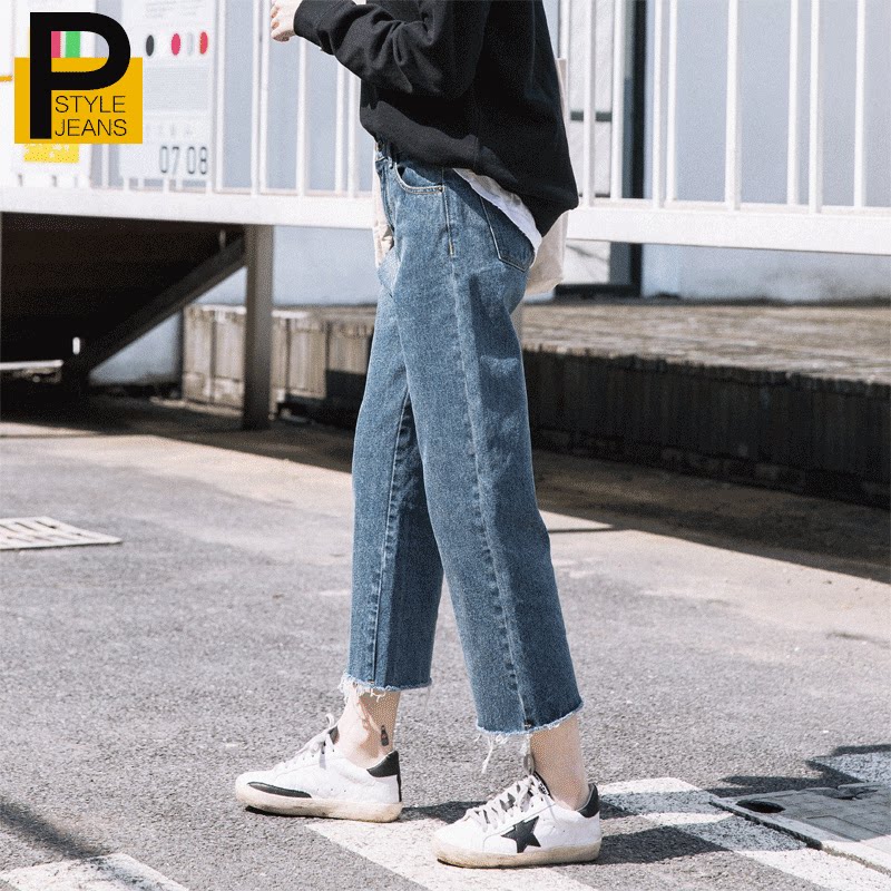 Spring and summer 2022 new straight legs high waist loose nine - minute jeans are slim pants