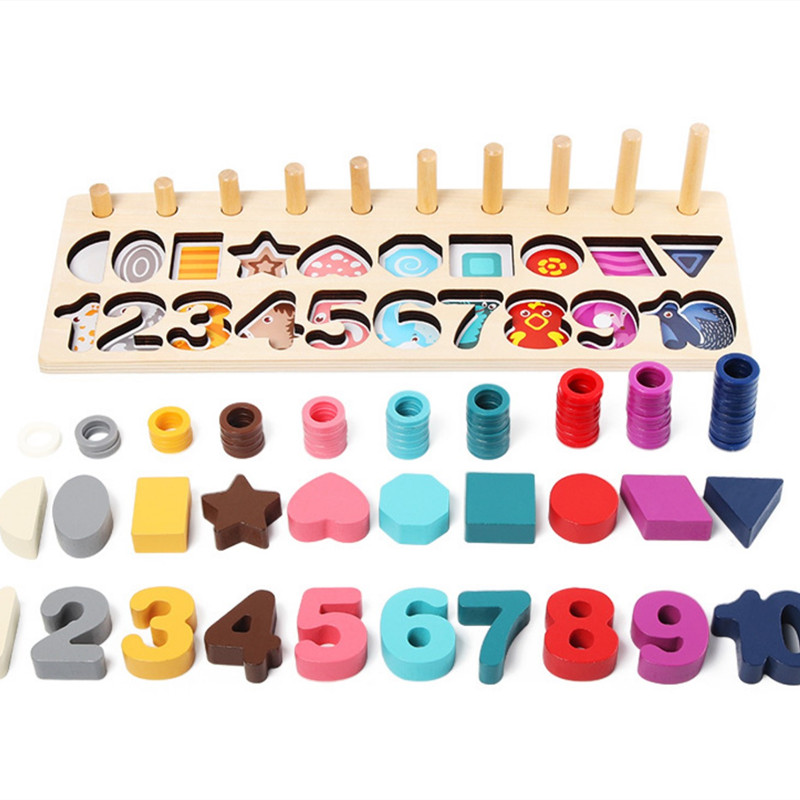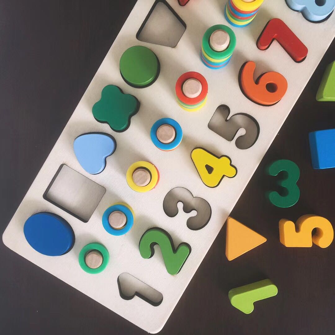 Knowing Digital Shape Three-in-one pair of mathematical enlightenment teaching young baby children with intellectual wooden pairing play