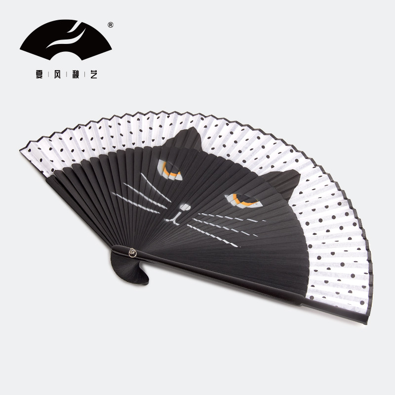Summer wind and autumn art Chinese style retro style Japanese style inkjet cute cat fan dance daily portable folding fan