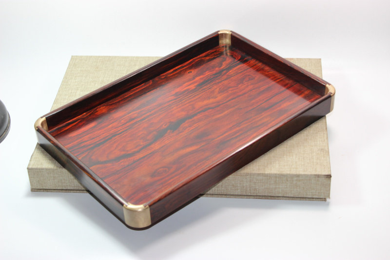Solid Wood Entrusted Trays Tea Tray Trays Red Wood Wenfang Containing Pan Red Acid Branches Fruit Pan Rectangular Inlaid Copper