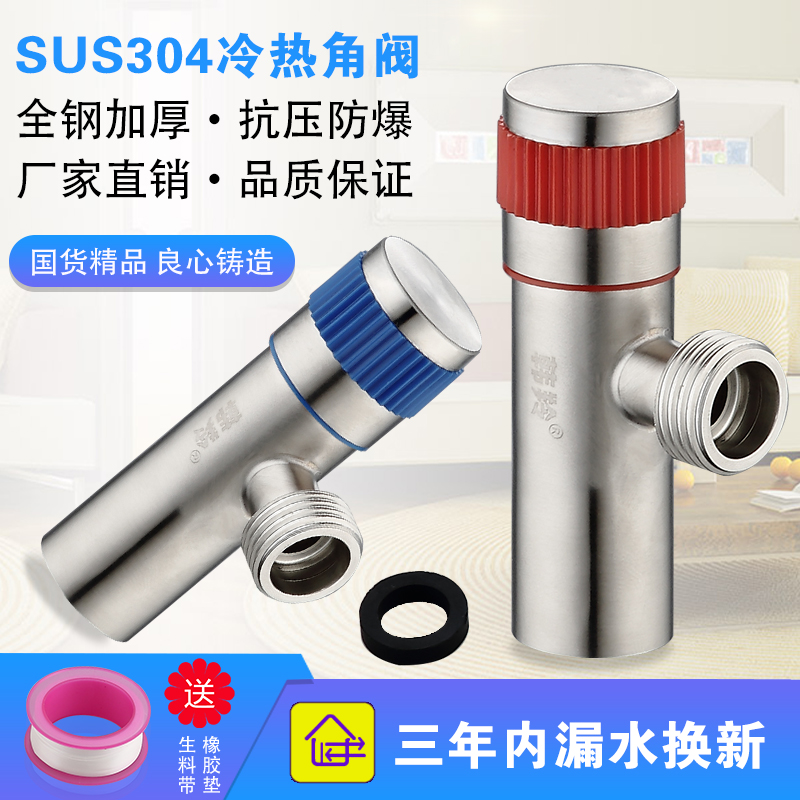 Stainless steel 304 inner and outer wire triangle valve water heater toilet 4 water pipe inner tooth eight-character water stop valve DN15 Ming valve