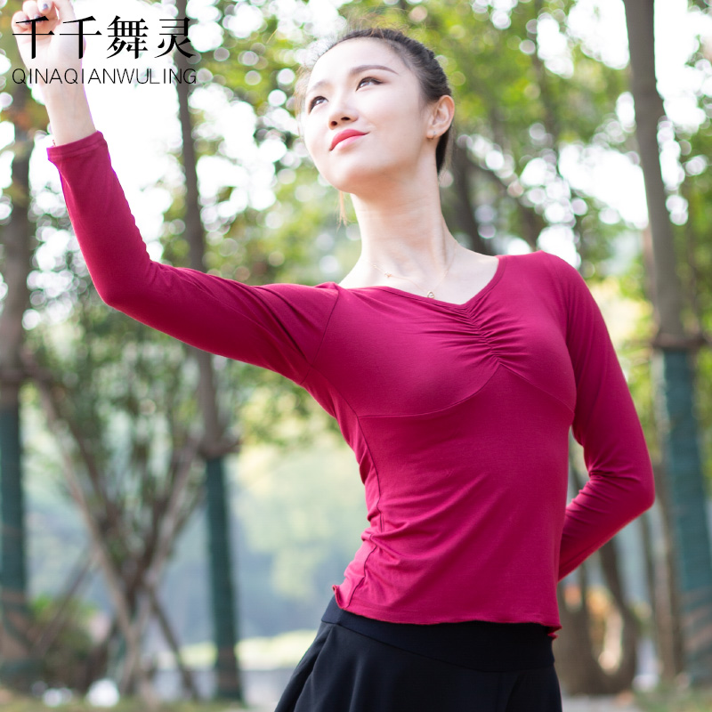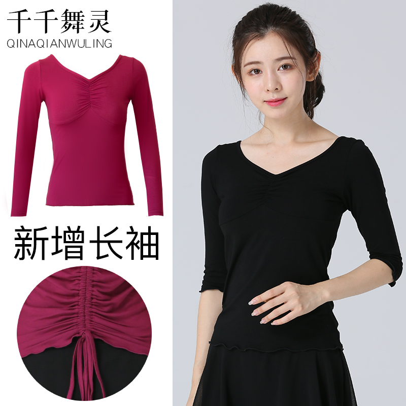 Latin clothing female adult blouses new dance outfit Modeir rehearslate medium long sleeve black dancer