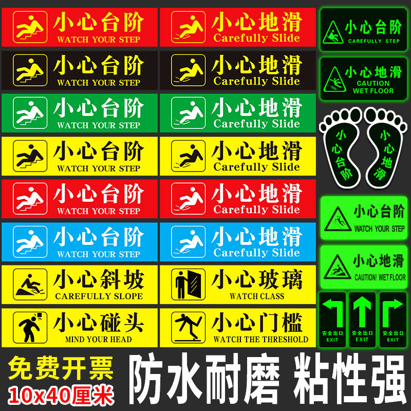 Be careful of slippery signs, step floor stickers, warning attention to safety signs, instructions, hotel men and women, toilet notices, wall stickers, luminous waterproof, non-slip creative outdoor outdoor customization