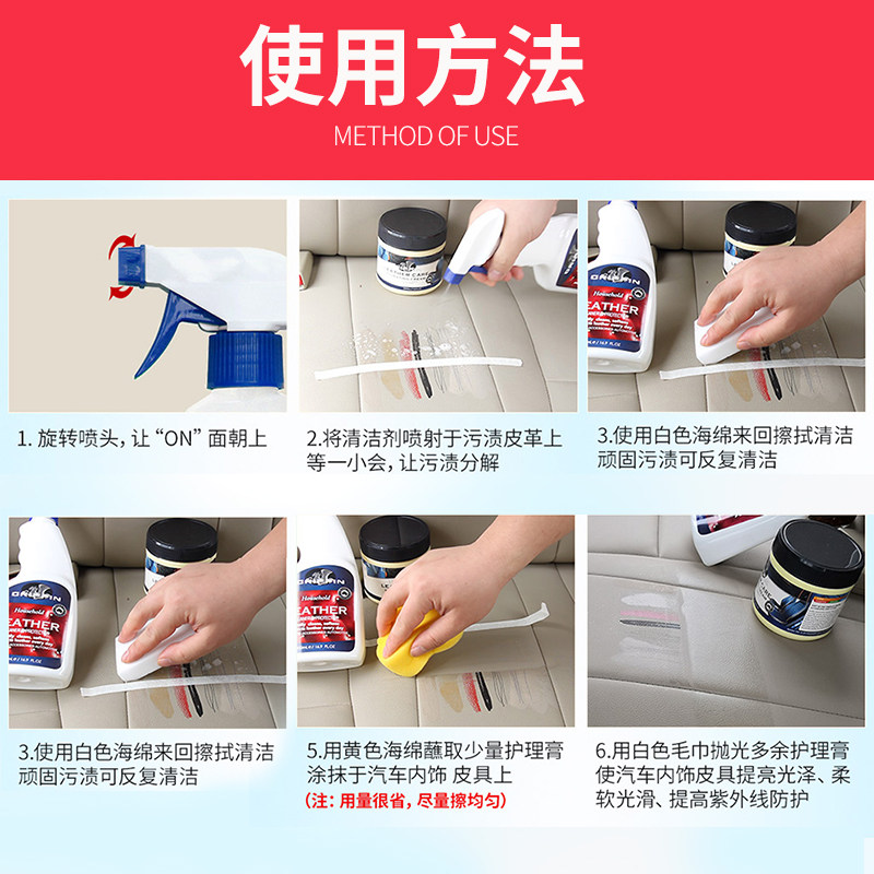Car Leather Care Cream(350ml) Leather cleaner (500ml) (Car leather Care cream Leather cleaner)Set