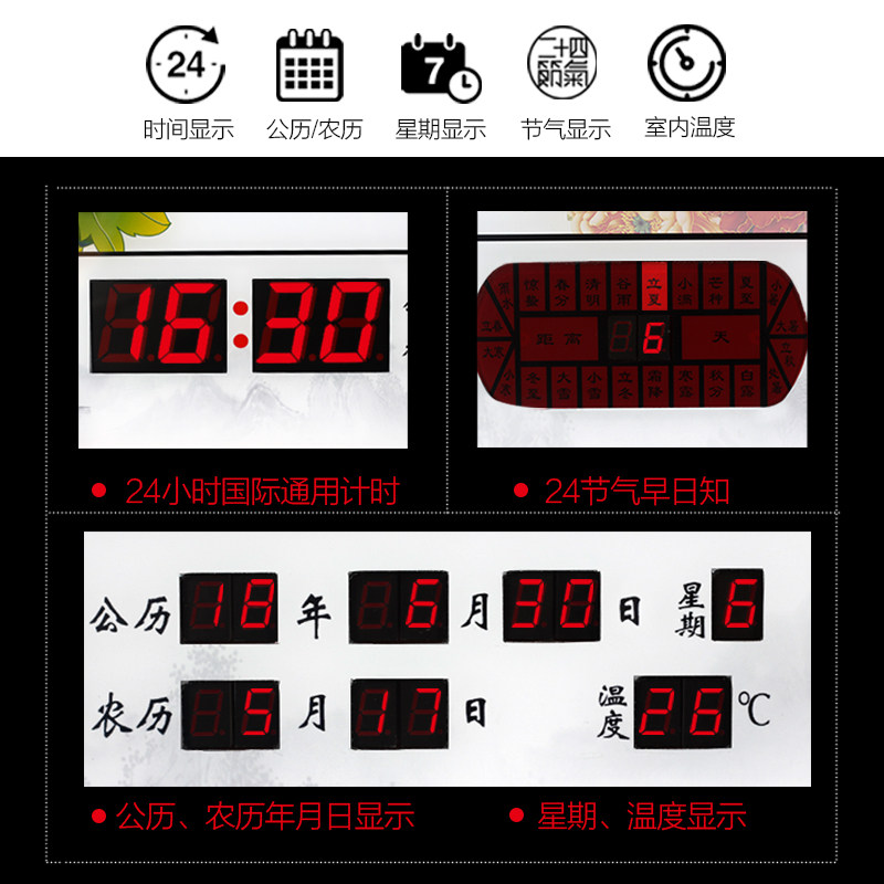Comba electronic LED calendar 2018 new digital wall hanging living room calendar home creative modern wall clock