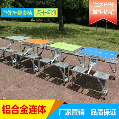 Outdoor folding table and chair one table four chairs portable aluminum alloy one-piece table stalls camping self-driving tour picnic table