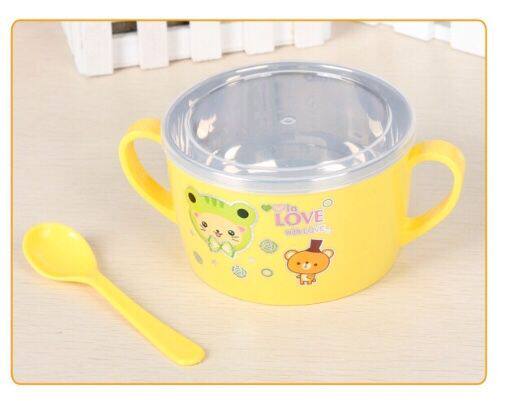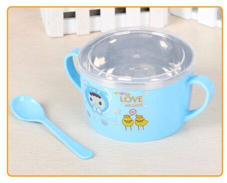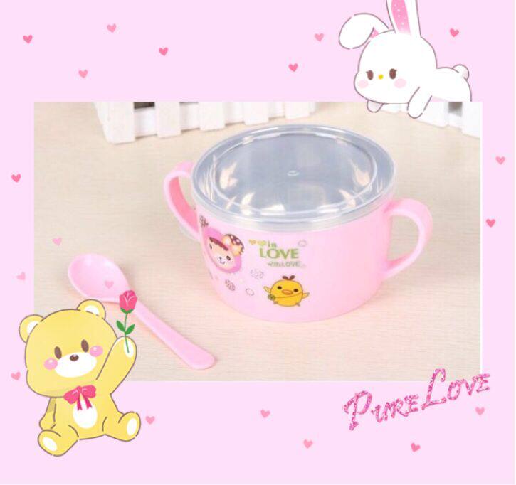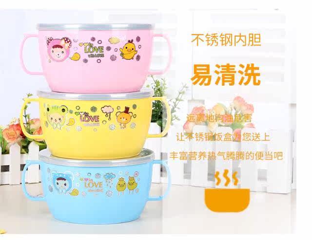 Large Binaural Children Insulation 304 Stainless Steel Meal Kit with spoon with lid Elementary pupil Anti-burn baby cutlery