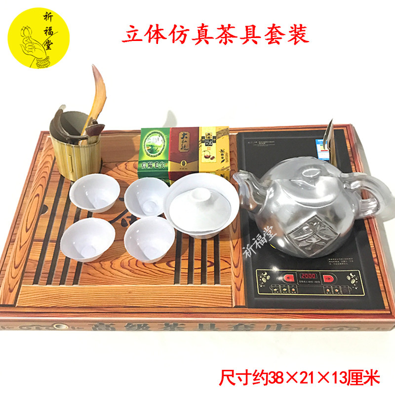 Sacrificial supplies three-dimensional tea set set simulation induction cooker tea table paper coins ingot burning paper