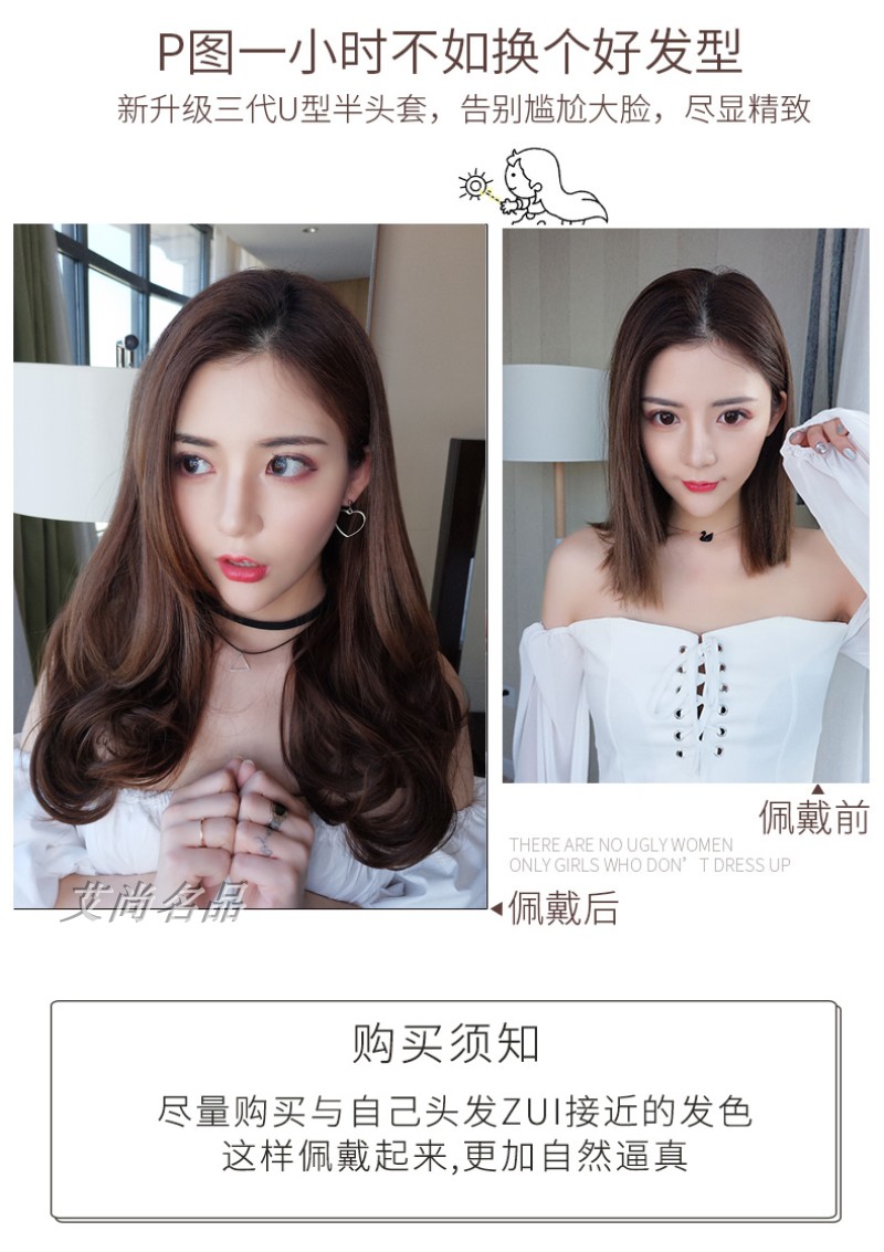 Wig female real human hair U-shaped half headgear Big wave fluffy curly pear flower head One piece real hair headgear new