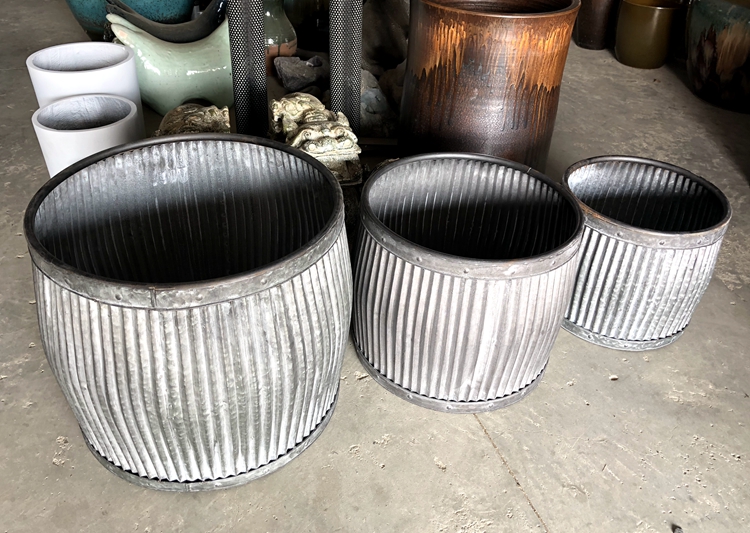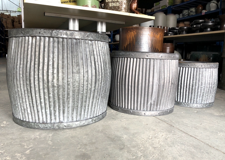 Foreign Trade Export Original Single Retro Iron Art Made Old Vertical Stripe Set Three Large Belly Drum Basin American Countryside Iron Art Barrel