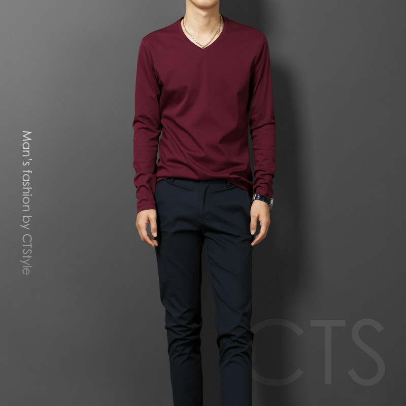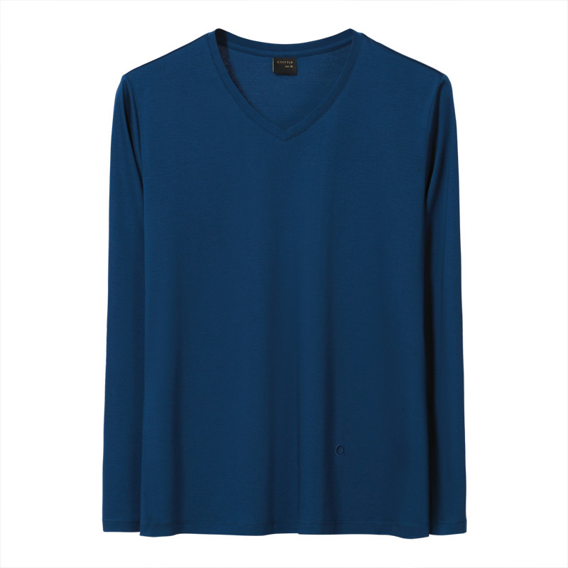 Double mercerized cotton men's V-neck long-sleeved T-shirt cotton solid color ice silk T-shirt autumn loose bottoming shirt 2021 new
