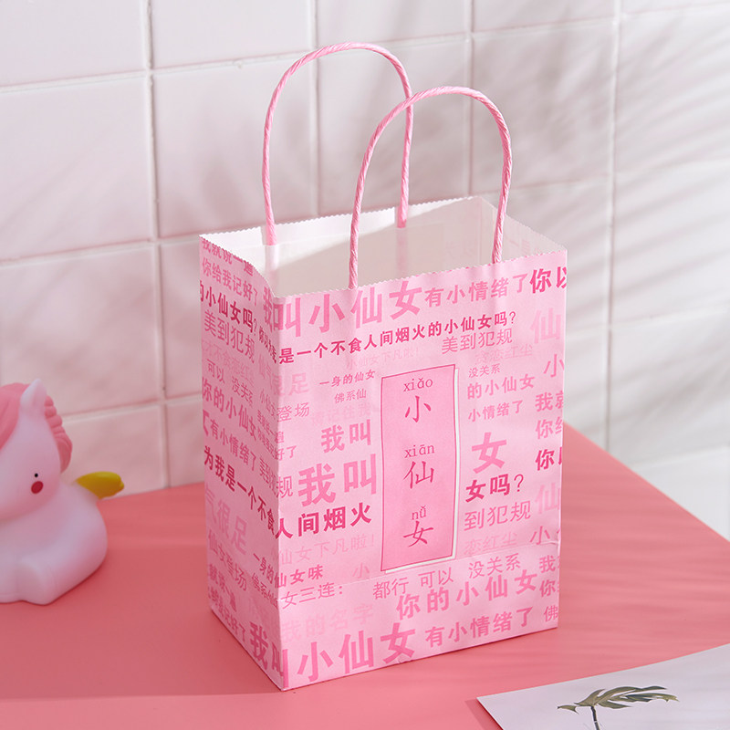 Korean girl heart cute little fairy Pink cartoon gift bag paper bag Hand carry gift bag New product