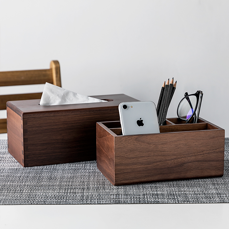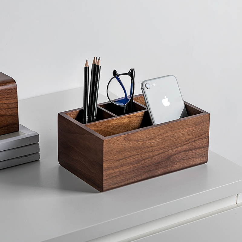 Black walnut remote control storage box Solid wood mobile phone stationery piecemeal storage box Entrance key finishing box
