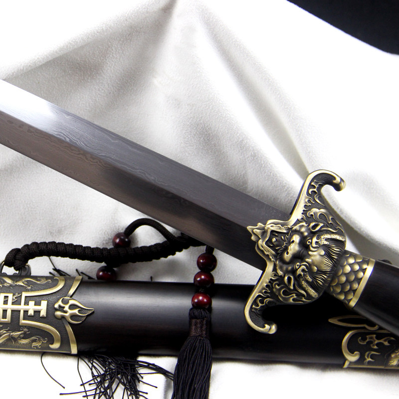 Longquan Sheng dragon and wooden knife pattern steel sword long Qingjiang copper pack single hand sword unopened blade