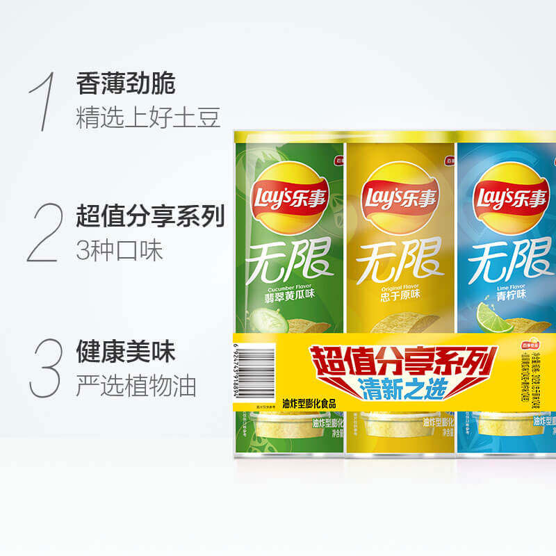 Lay's Infinite Triple-Potato Chips Fresh (Original Cucumber Lime) 104g×3 cans
