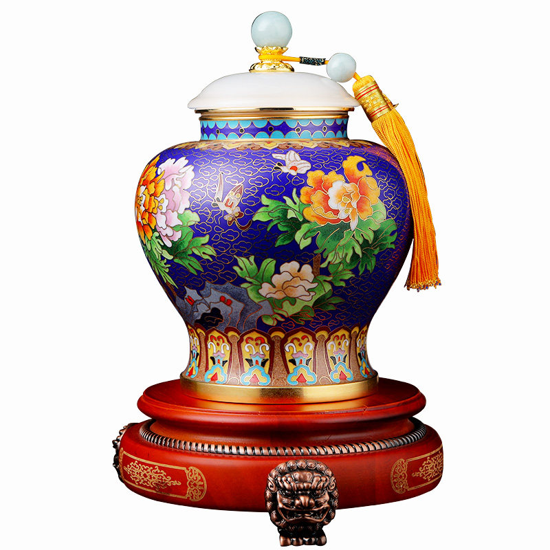 Dai Jialin cloisonne inlaid jade Fulu tea cans office coffee table ornaments to send leadership art collections