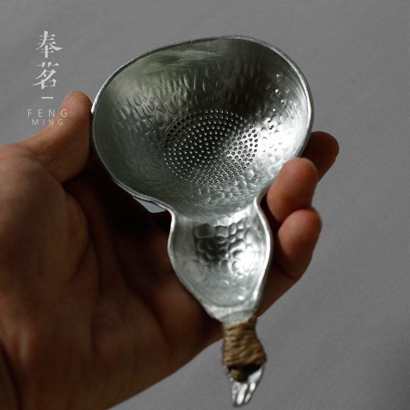 Sweet white pure tin gourd tea strainer handmade tea leak filter Hammer pattern tin creative kung fu tea set accessories