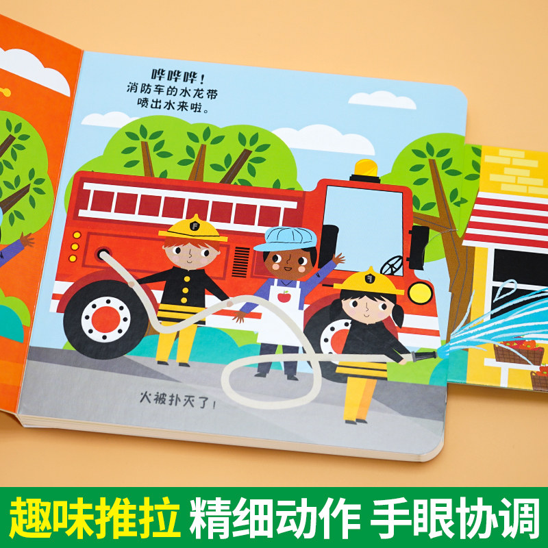 Children's stereoscopic book 3d turned over book 1-2-4 years old young child enlightenment Cognitive Storytelling children Kop cardboard book busy and rescue series Fire Truck Helicopter Tug Boat Towed early to rip without bad push