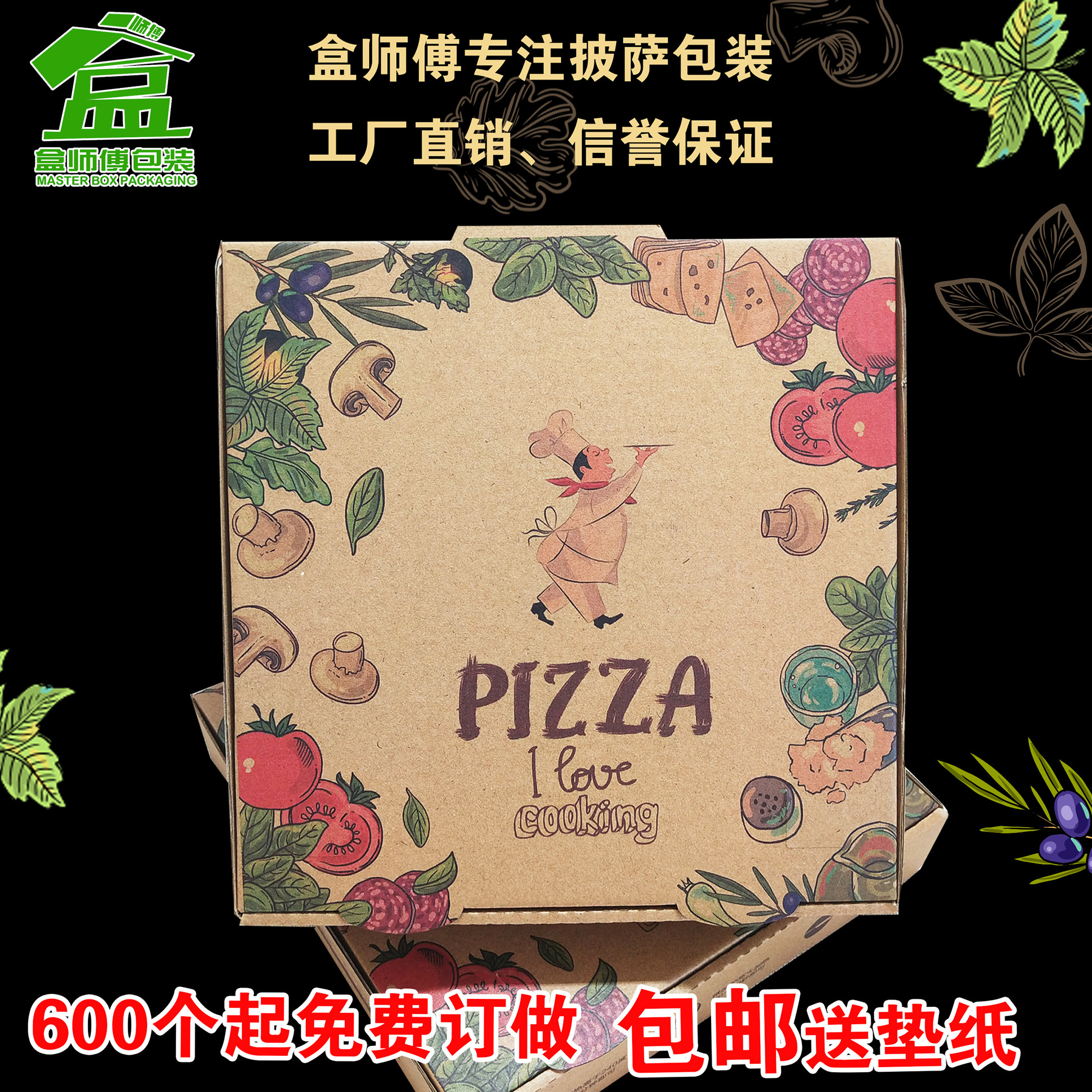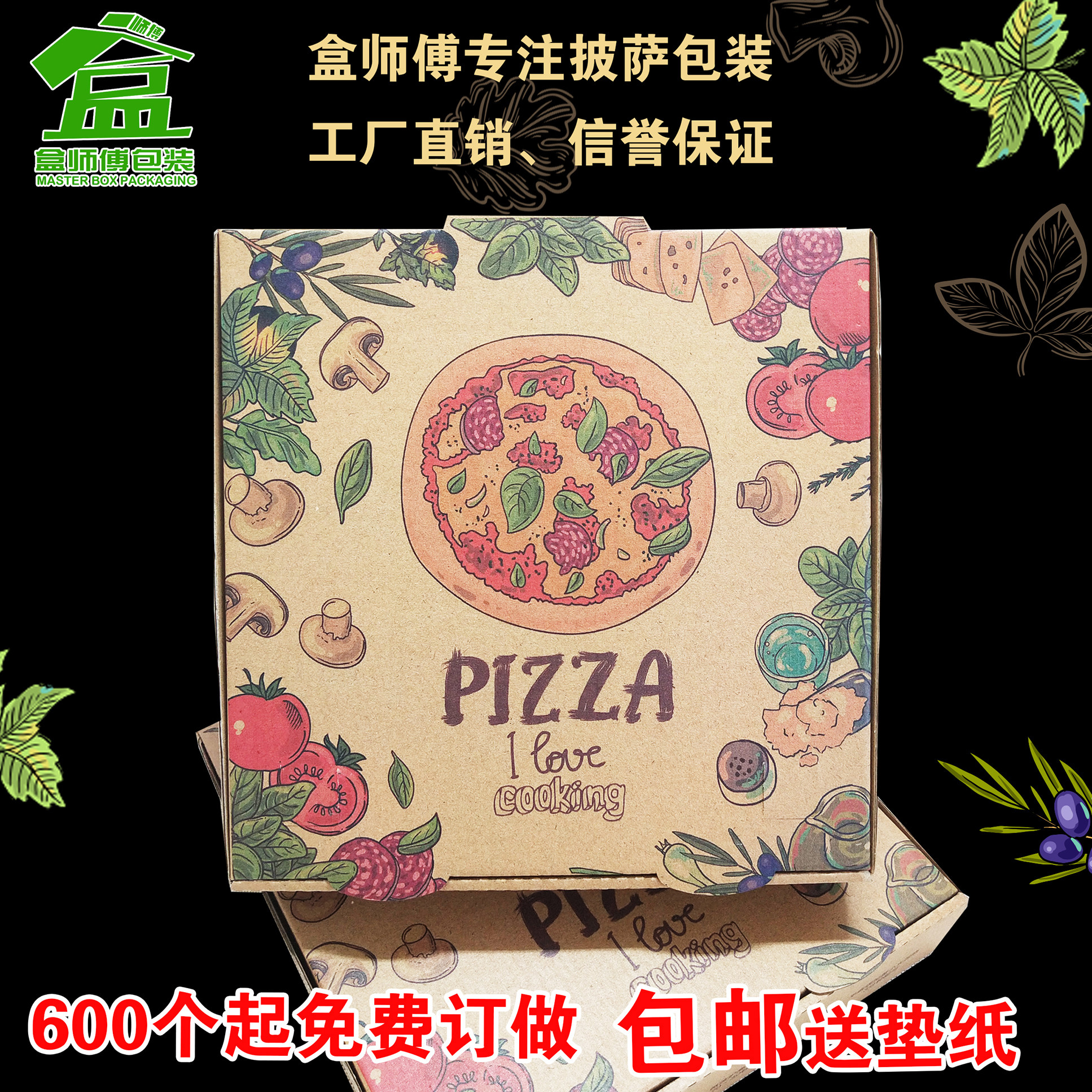 Pizza Box Thickening 6 7 8 9 10 12 12 16 16 18 inch pizza Box Bull Leather Corrugated Pizza Box Versatile