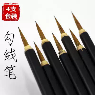 Size 4 sets of hook line brush and milli wolf pen Purple milli hook line pen brush Chinese painting line drawing pen Gongbi painting special pen Leaf tendon pen Coat pattern pen Thin gold body small regular script special brush