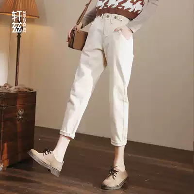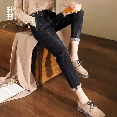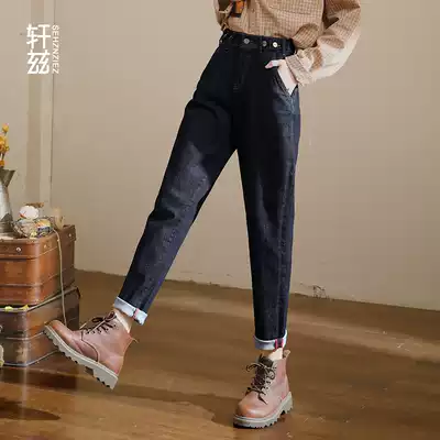 Plus velvet jeans women Haren pants autumn and winter women's pants 2021 New High waist slim nine-point dad pants lob pants