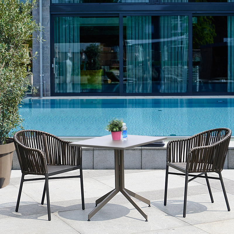 Four chairs One-legged square table and four chairs One-legged round table and four chairs Herringbone footed square table and four chairs Herringbone footed square table and four chairs Marble square table and four chairs Marble round table and two chairs One-legged square table and two chairs One-legged round table