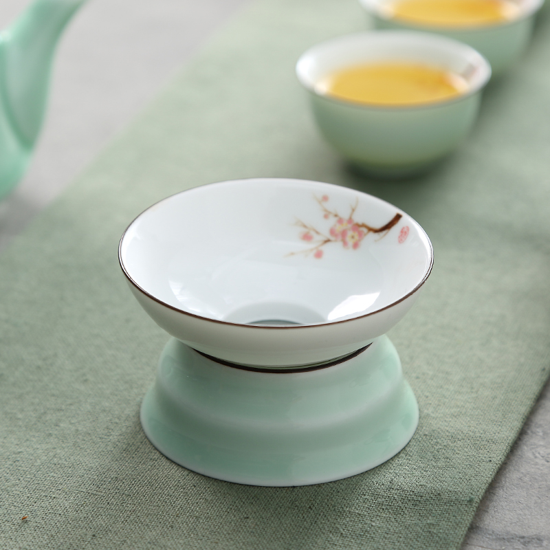 White porcelain tea leak ceramic tea filter filter kung fu tea set hipster plum blossom