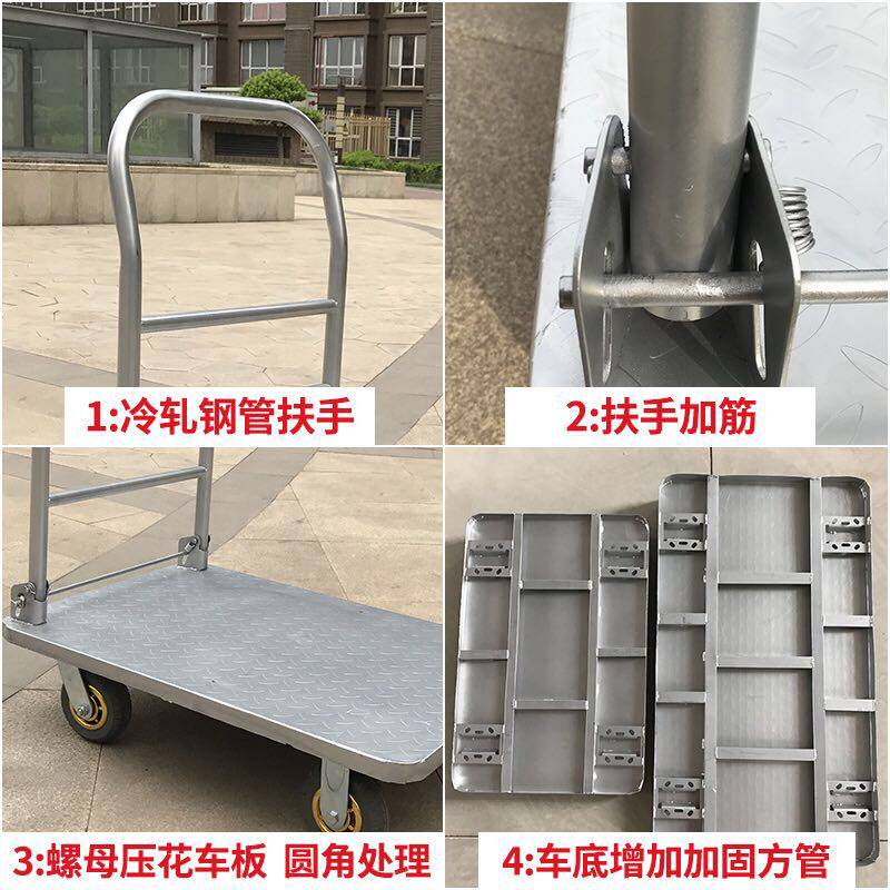 700*1100(600KG) Folding Hand Push Steel Plate Truck Flatbed Truck Trailer Pulling Truck Moving Vehicle Storage Vehicle