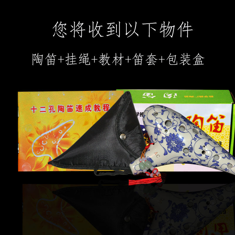 Sky City blue-and-white porcelain ocarina 12-hole beginner entry ac-tuned alto student plus teaching material 12-hole female