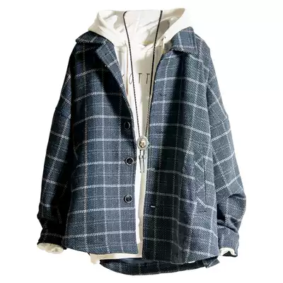 Sugar rose woolen vintage plaid jacket boys and girls 2021 spring and autumn Korean version of loose Chaogang style jacket