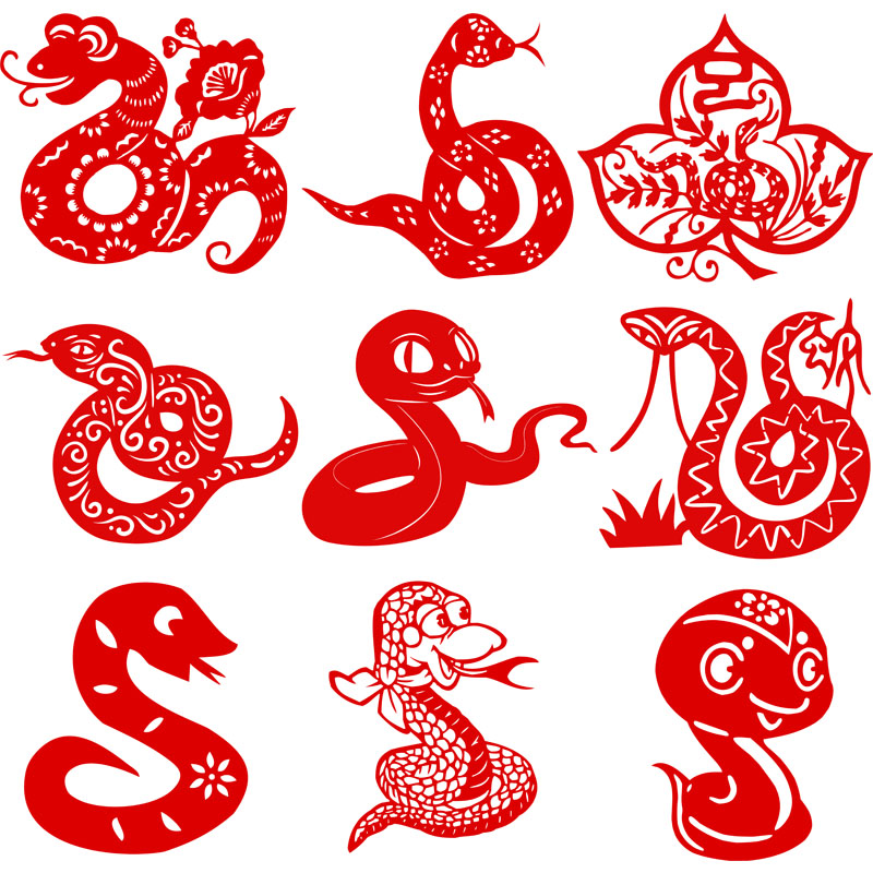 School kindergarten paper sticker twelve zodiac animal snake traditional hand-hollow window flower cut paper snake decoration painting