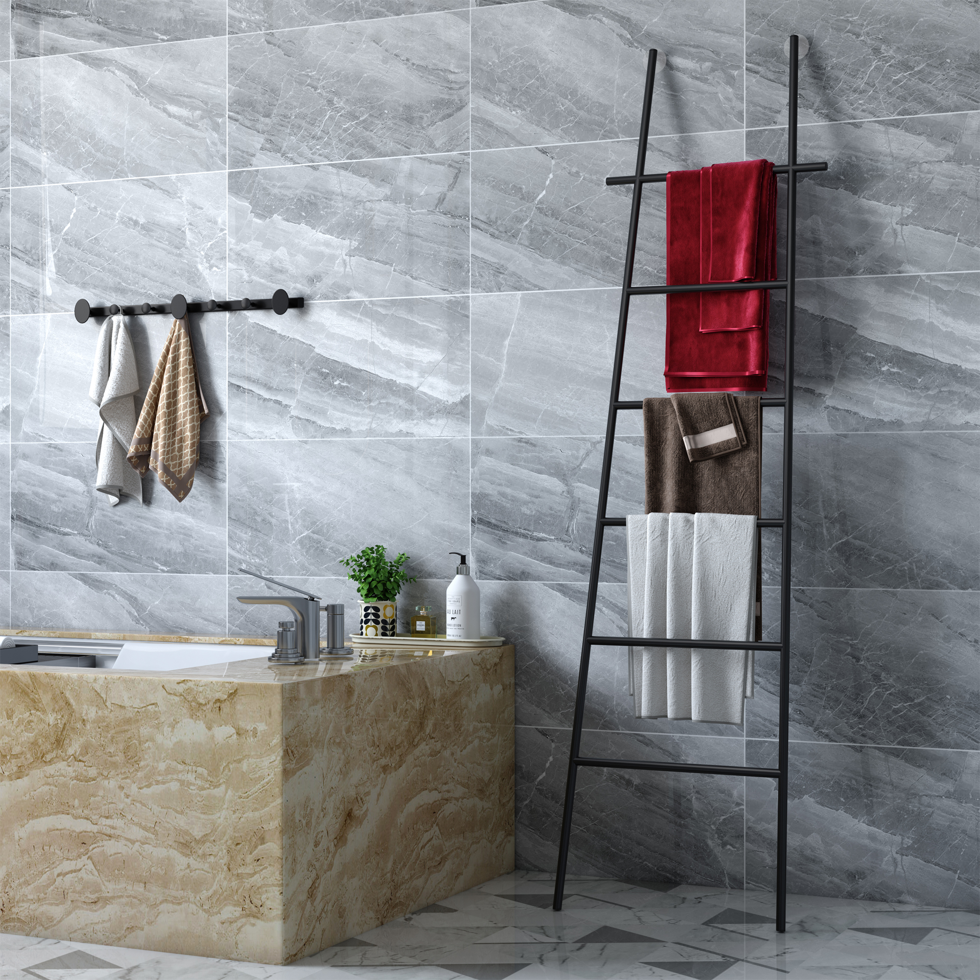 Nordic simple creative ladder towel rack floor-to-ceiling free punch suction cup non-slip bath towel rack rack powder room